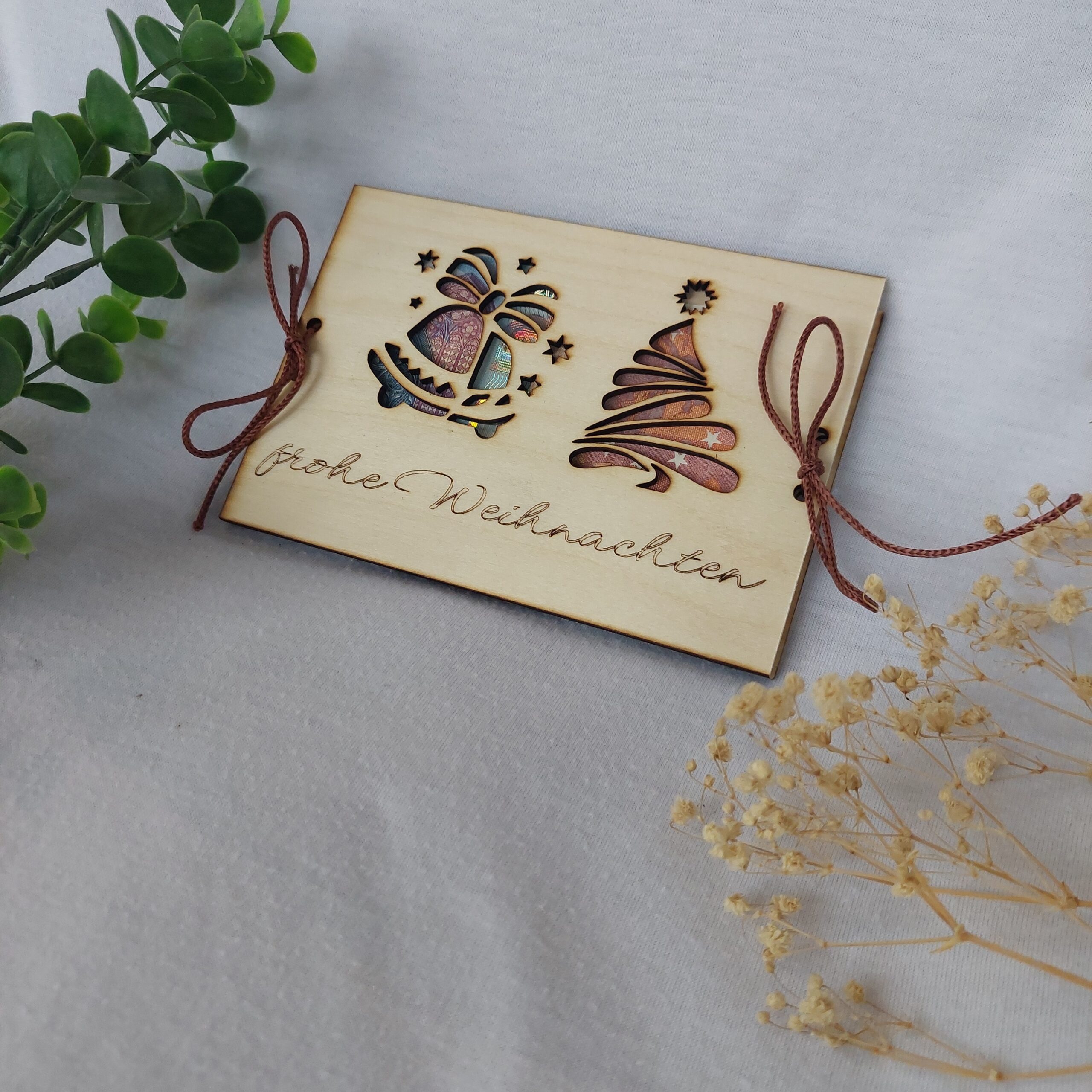 Festliches Geldgeschenk aus Holz – „Frohe Weihnachten“ – Originelle Gutscheinverpackung