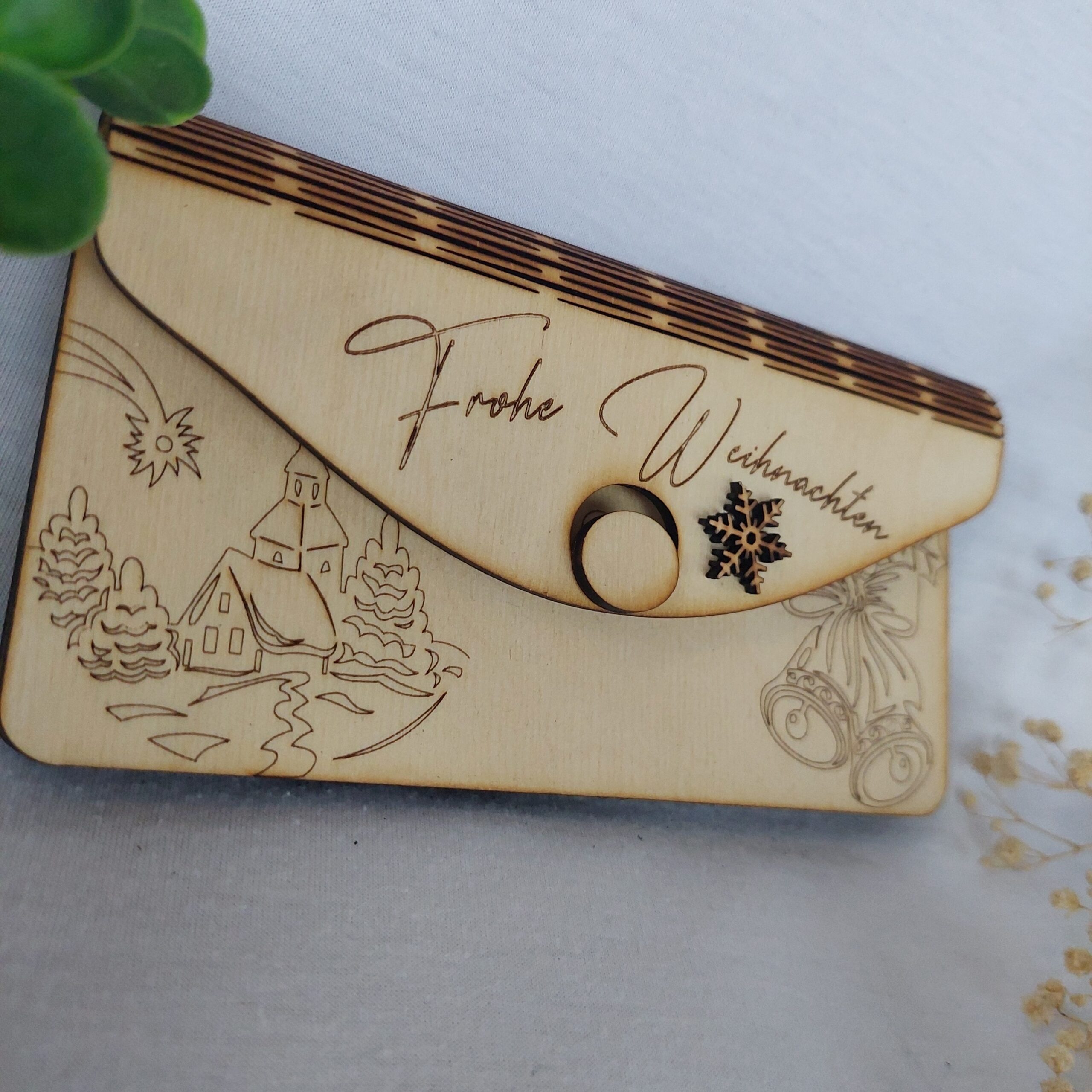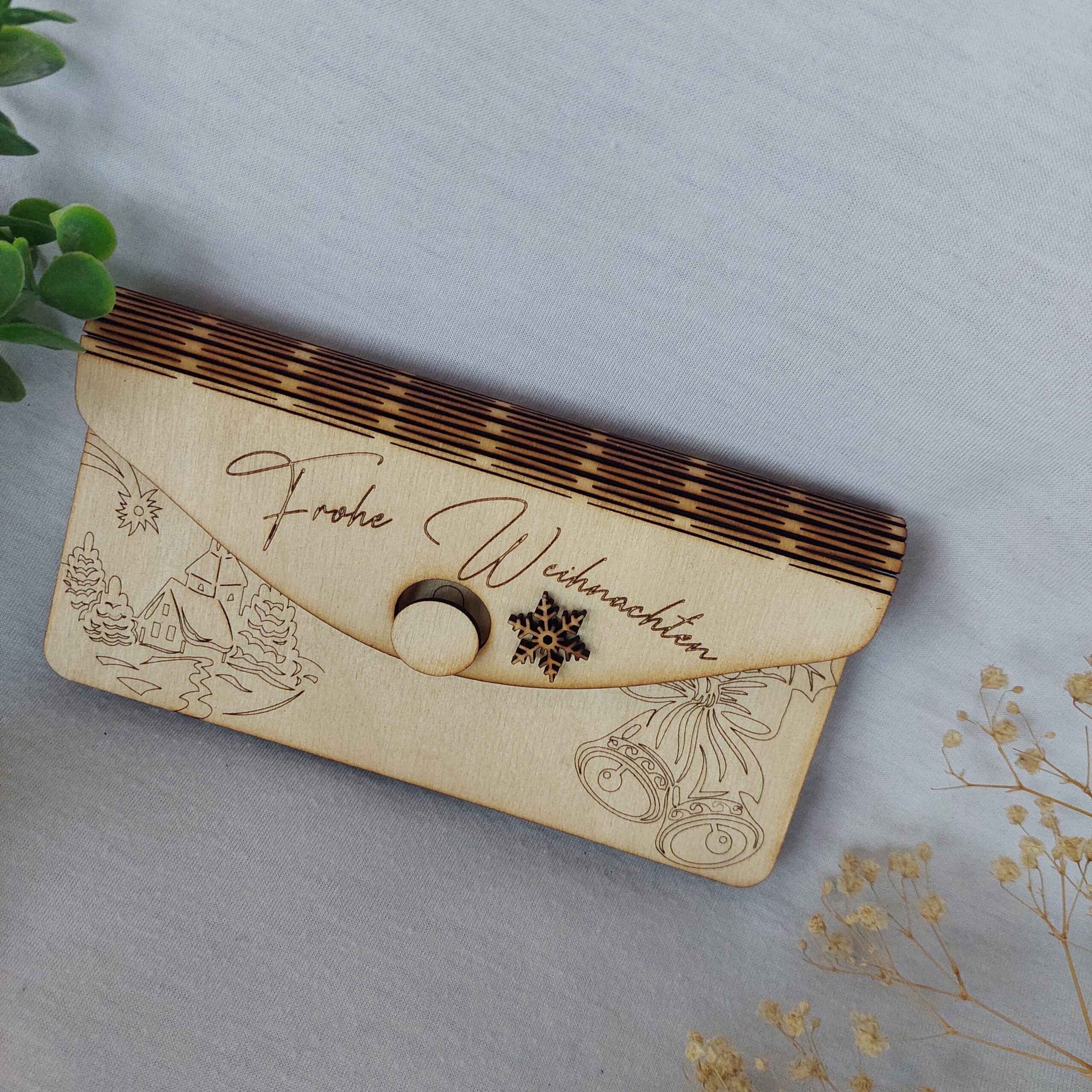 Hölzerner Geldumschlag „Frohe Weihnachten“ – Festliche Geschenkverpackung für Gutscheine & Geld