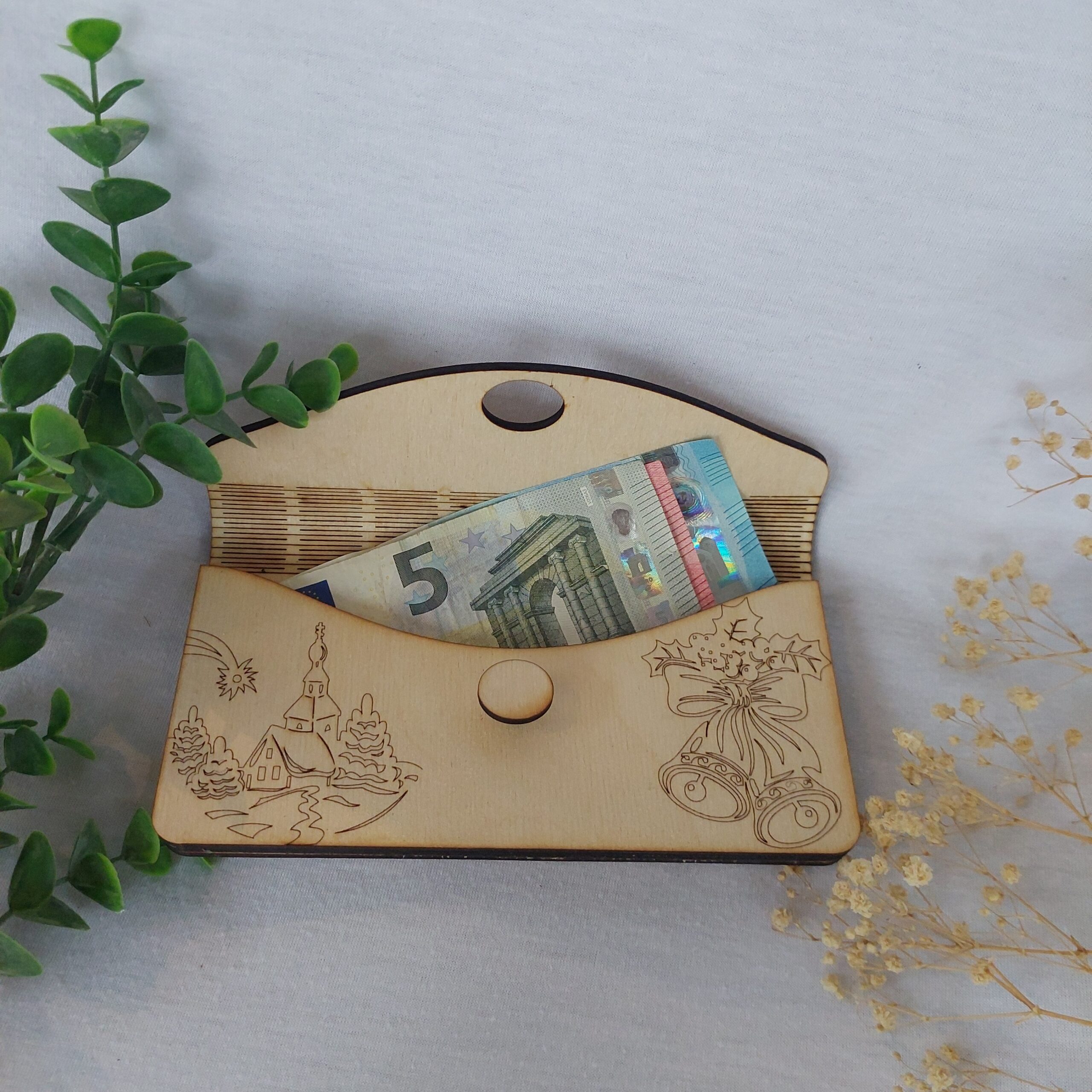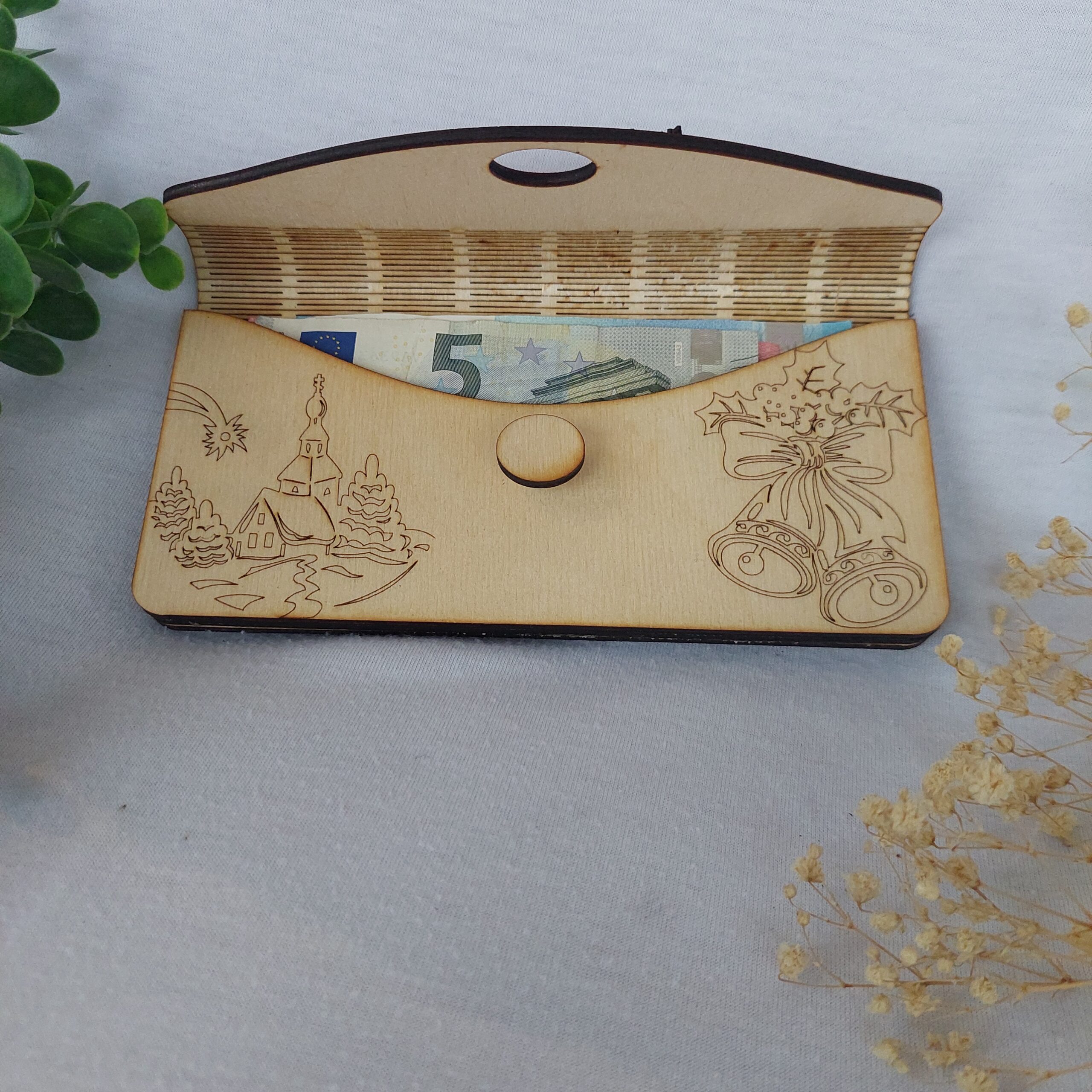 Suchen Sie eine stilvolle und besondere Art, Geldgeschenke oder Gutscheine zur Weihnachtszeit zu überreichen? Unser hölzerner Geldumschlag „Frohe Weihnachten“ ist die ideale festliche Alternative zu herkömmlichen Papierumschlägen.