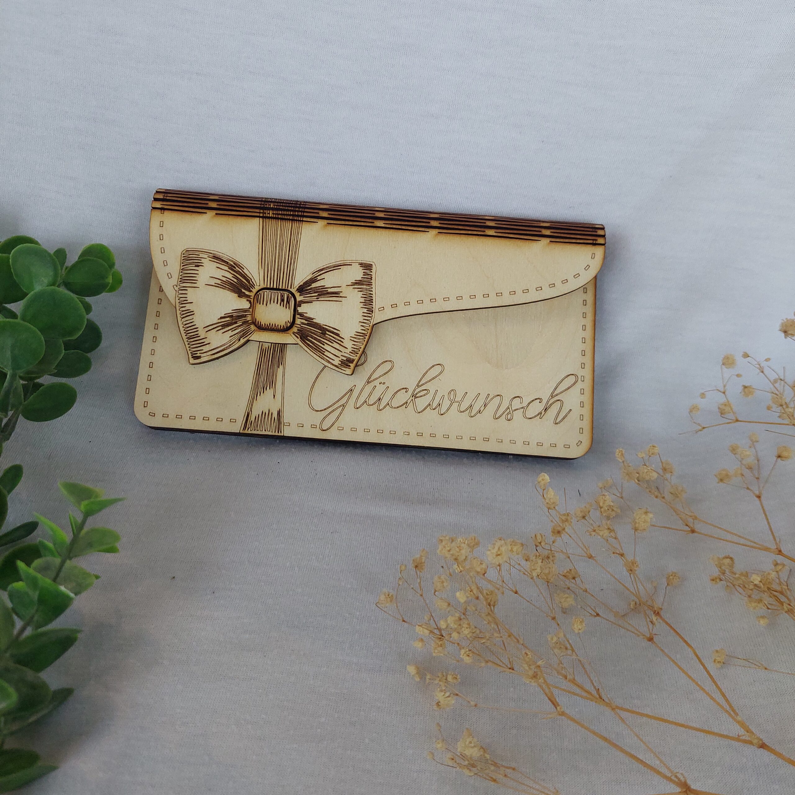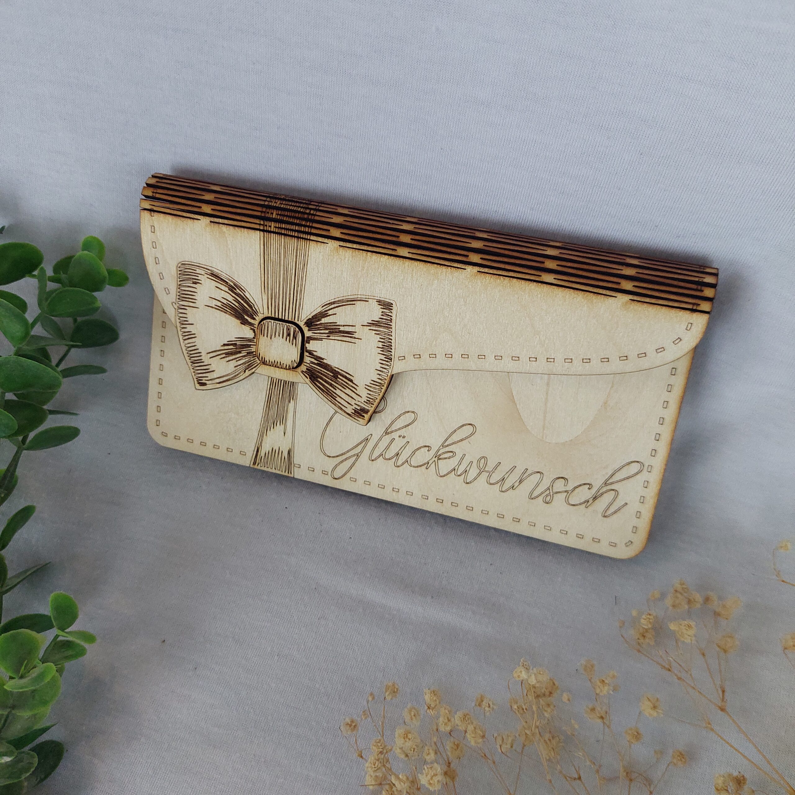 Zeigen Sie Ihre Wertschätzung und Anerkennung auf eine besondere und bleibende Weise. Dieser Holzumschlag macht aus einem einfachen Geldgeschenk ein unvergessliches Highlight.
